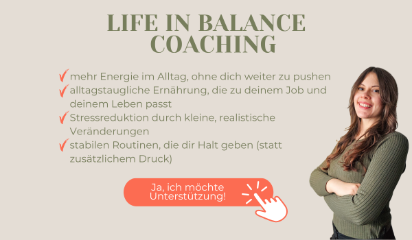 Mein ganzheitliches Anti-Stress Ernährungscoaching hilft dir, wieder mehr Balance, Energie und Ruhe in deinen Alltag zu bringen.