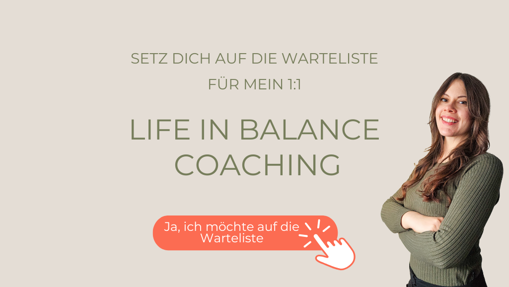 Und wenn du individuelle Unterstützung auf deinem Weg zu mehr Ruhe und Balance brauchst, dann melde dich für mein 1:1 Coaching.