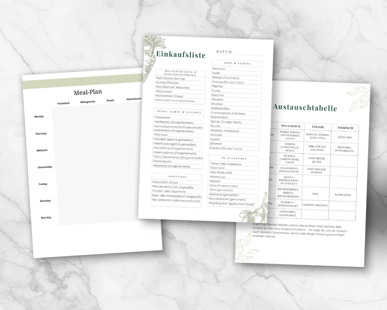 ✓ Eine praktische Austauschtabelle, damit du einfach und flexibel Zutaten austauschen kannst. So bleibt gesunde Ernährung alltagstauglich und macht Spaß